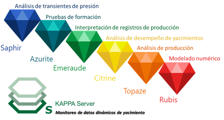 KAPPA: es una suite de ingeniería completamente integrada que ofrece herramientas de análisis y modelado de datos dinámicos de yacimientos que se ha convertido en la plataforma estándar para la industria de los hidrocarburos a nivel mundial. Adicionalmente facilita la conexión con flujos de trabajos de terceros para el manejo de datos provenientes de sensores permanentes de fondo y de yacimientos no convencionales.
